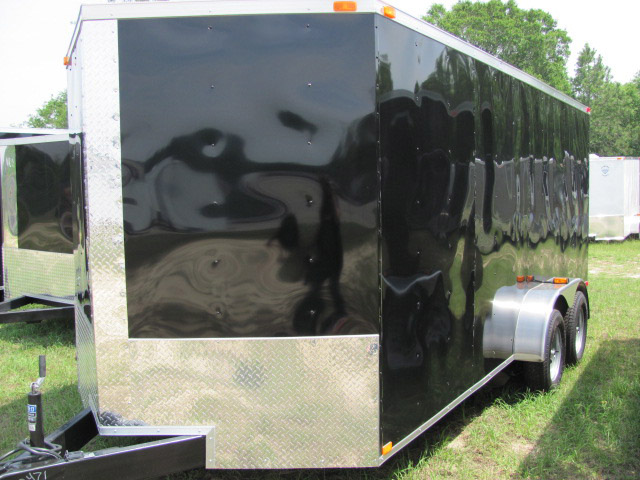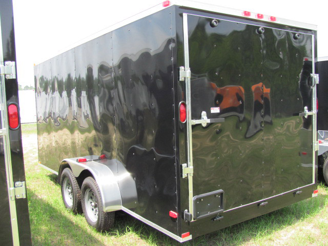 2012 7' X 16' Black Standard V Nose Double Axle Motorcycle Trailer with Complete Exterior LED Light Package